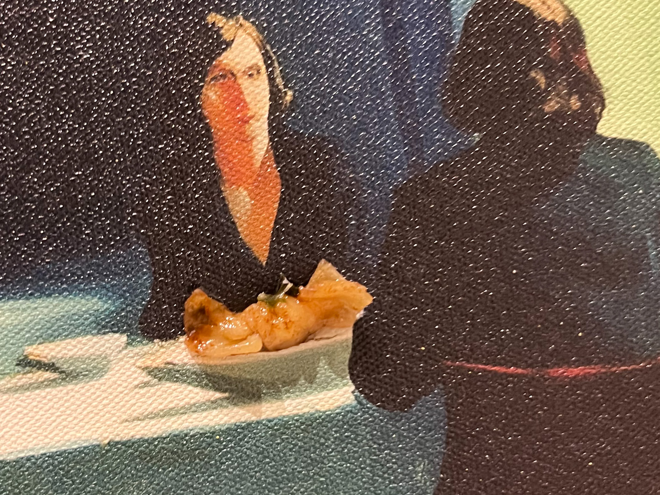 This image captures that moment of adaptation and acceptance. A bowtie-shaped wuntun—“Chinese dumpling”—is plated in front of the
